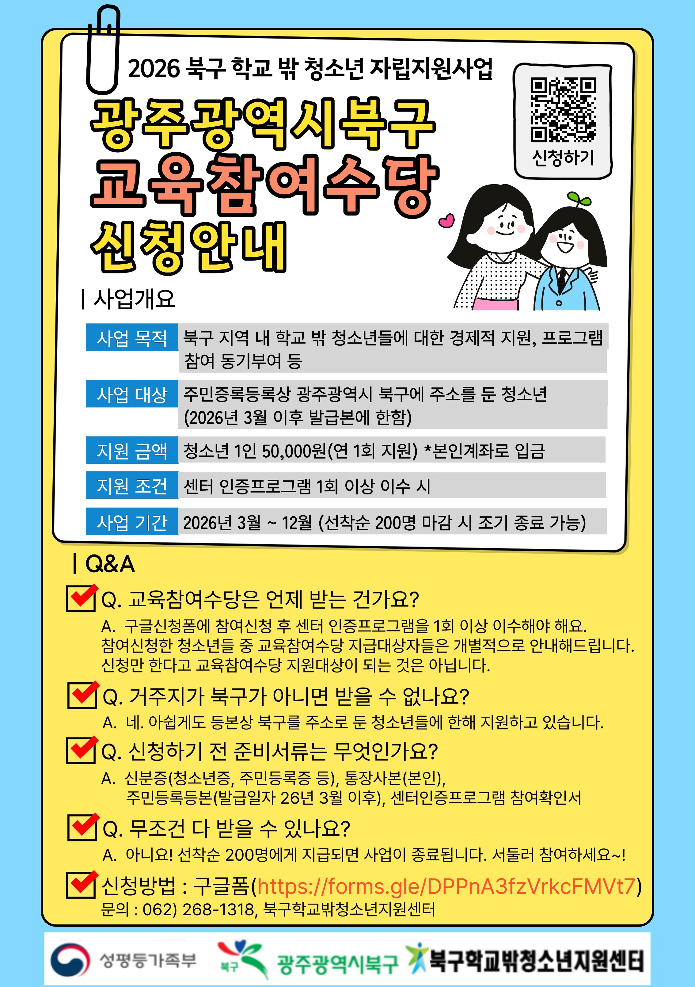 📞 ¹®ÀÇ: ºÏ±¸Çб³¹Ûû¼Ò³âÁö¿ø¼¾ÅÍ (062-268-1318)