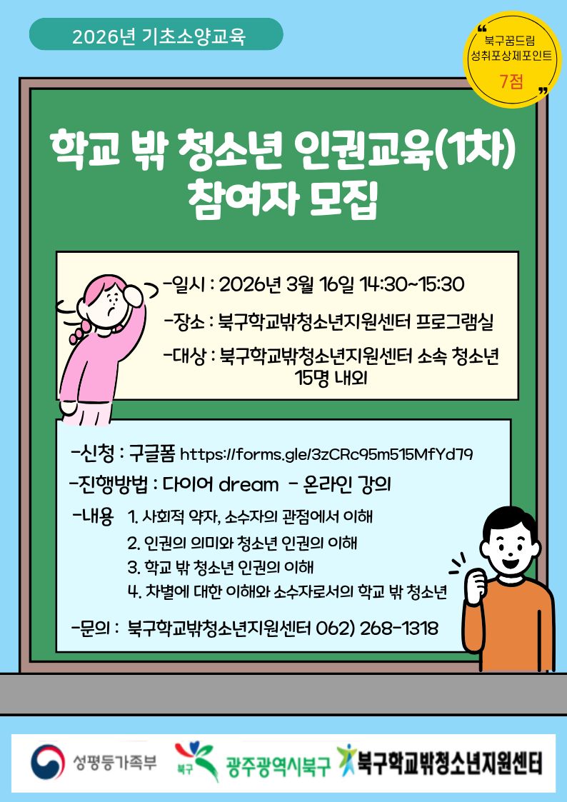 - ¹®ÀÇ : ºÏ±¸Çб³¹Ûû¼Ò³âÁö¿ø¼¾ÅÍ 062)268-1318